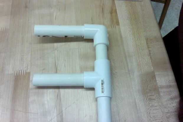 -Ahora inserte los tubos de 2 pulgadas en el codo de 90 grados y la salida del conector en t