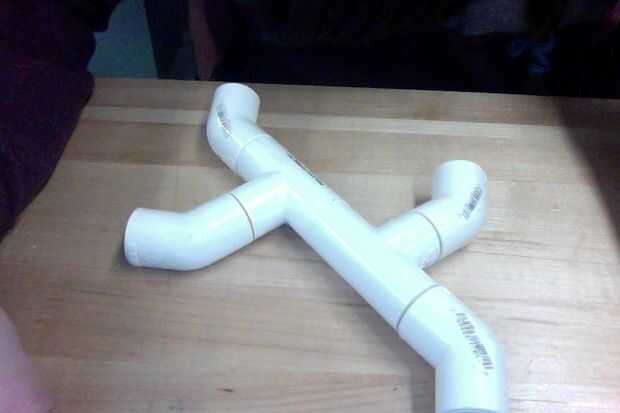 -Añadir un codo de 45 grados a la parte inferior de la t * Asegúrese de que los 45 hace una forma regular de C *