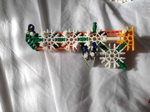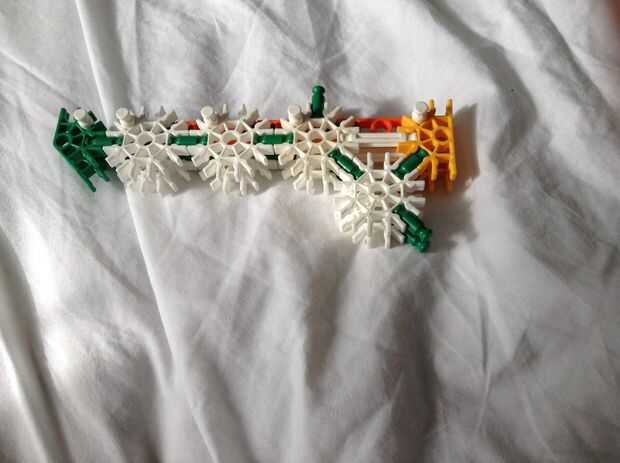 aquí es un guardianes de la galaxia Starlord pistola he creado. Es una foto única, pero creo que es un poco singular. Puede disparar hasta una explosión ronda cuatro, por la carga de barras verdes de la parte superior como se ve en la foto tres. Aquí