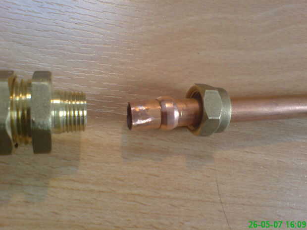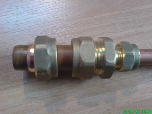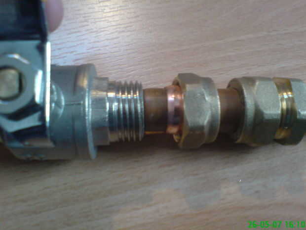 en primer lugar obtener su tubo de 10mm y firmemente Conecte al adaptador de 15 a 10 mm luego coloque unos 5cm de tubo de 15mm en el otro extremo del adaptador. luego conecte este a la válvula de bola para que tire de la palanca de la extremidad del cañón para abrir.