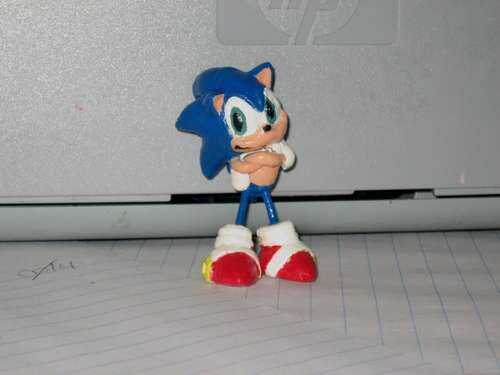 I've made this Sonic figurine out of polimer clay ( http://en.wikipedia.org/wiki/Polymer_clay ). Sólo he publicado fotos porque creo que hablan por sí mismos.Disfrute :)