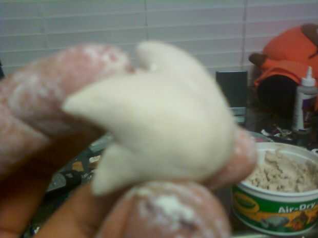 Después de utilice una herramienta para tallar los ojos y desecho de arcilla para hacer las mejillas de la cara de Sonic