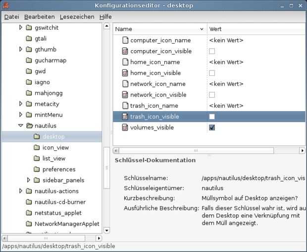 Paso 2: GCONF: mostrar u ocultar los iconos para el hogar, computadora, red, papelera
