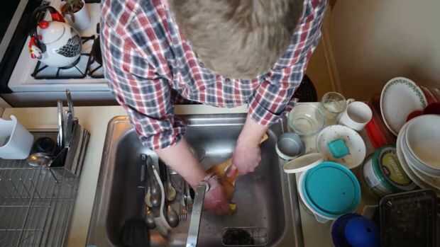 Usted está haciendo buenos progresos, pero todavía eres un cochino total. Como dice el viejo refrán, cuando la esposa está lejos, los chicos no van a hacer platos todo el tiempo. Así que lave los platos. Eso es un montón de platos brah y necesitas lavarlos ido. Y!