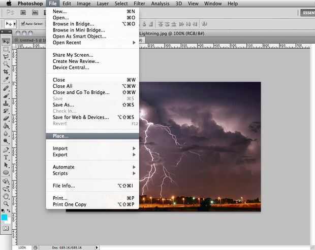 3. ir a 'archivo' y 'lugar' la segunda imagen en el documento. (ver imagen 2)