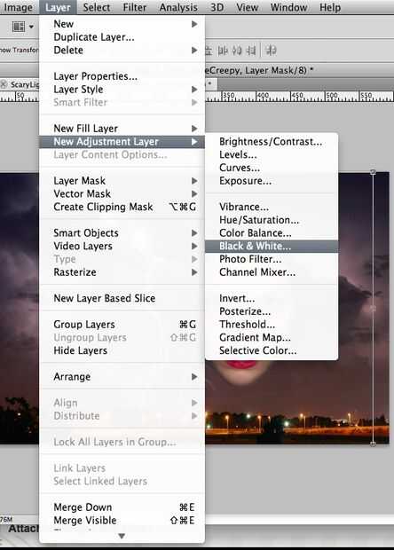 7. clic derecho sobre la capa ' blanco y negro ' (en palabras) y haga clic en 'merge visible'. (ver imagen 5)