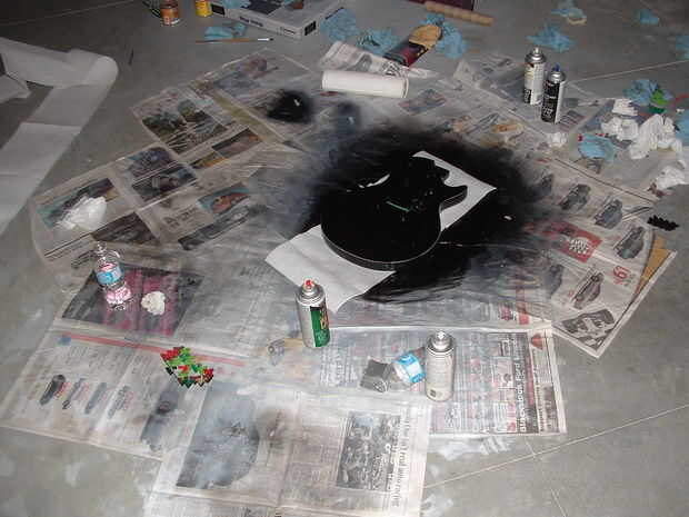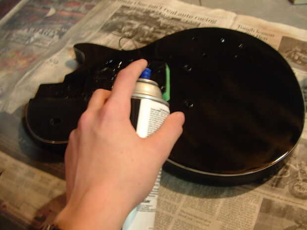 ¡ Recuerde! Cuando pinta, la guitarra debe ser plana, o la pintura goteará! Por eso recomiendo hacer cada lado por separado.