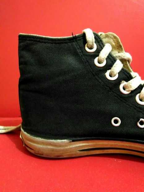Hacer que tus zapatos viejos nuevos con algún brillo brillante!Paso 1: Materiales reunir Materiales necesarios:Zapatillas viejasTapa de plástico o paletaPegamentoCinta de pintorCintaTijerasCepillo de la esponjaBrilloPaso 2: Desenlazando sus zapatilla