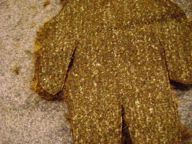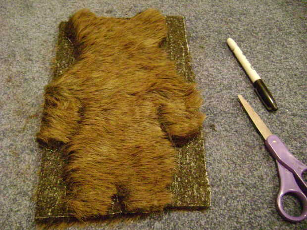 -Entonces sacó, en el lado no difusa de la tela, lo que yo pensaba que quería como basada en fotos que tenía hasta busqué antes. Usted debe quedarse en sólo una mitad de la tela. Es importante que deje aproximadamente media pulgada de espacio alrededor de donde desea que el borde de su peluche a ser.