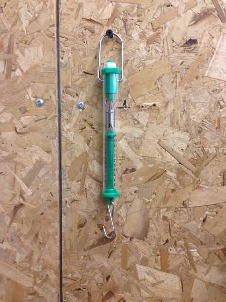 Coloque el medidor de fuerza en el tornillo con el gancho hacia abajo.