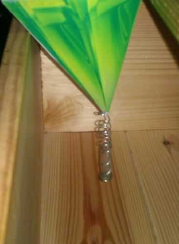 Inserte este en el agujero que acaba de hacer y vierta un poco araldite en el orificio hexagonal de su mitad, espero que con la viscosidad de araldite no escape a través del pequeño espacio en su agujero (pero compruebalo no gotea como se seca). Si te estás preguntando dónde poner esto como que se está secando, puede utilizar un cajón como lo hice. Una vez que esto se haya secado esa bobina se adjuntará muy firmemente el plumbob.