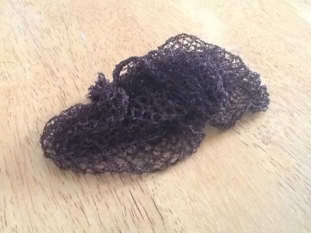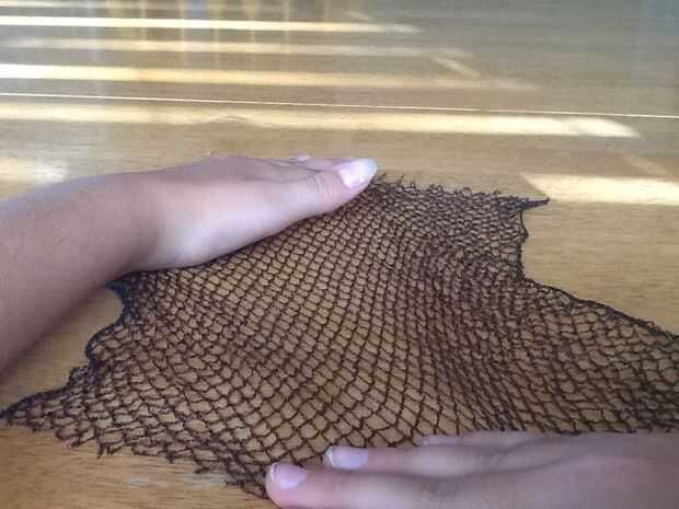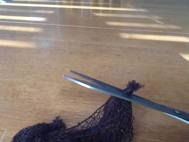 Su red para el cabello y encuentre los dos nudos que hacen que el pelo circular (figura dos). Coger sus tijeras y cortó los dos nudos (cuadro 3). Comience extendiendo su manera de bruja muy vail (foto 4), hasta conseguir la forma de u y longitud deseada de la red para el cabello.