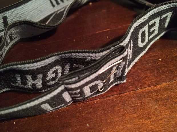 El objetivo que desee adjuntar a la banda de la cabeza es probablemente más pesado que la cabeza LED luz o al menos más grande y desequilibrada. La cuerda elástica de mi banda de la cabeza fue demasiado largo (o débil) para mantener firmemente y steadt alrededor de mi cabeza. El cable se puede consolidar por doblar el cable flojo y colocación sobre el resto de la cuerda y grapa juntos. Pero surgió un nuevo problema. El cable fue mucho más estricto que antes y ahora se deslizó fuera de los pernos de montaje en la placa principal debido a la fuerza extra. Esto lo solucioné así: tira de 5 centímetros (2 pulgadas) de cable eléctrico de 3 cables con un manto resistente. Corte y mantenga el pelado manto en 2 trozos de 2 centímetros. Caliente en agua caliente hasta que estén flexibles, pegue una en cada extremo de la cuerda elástica y puede deslizar el conjunto sobre el 1 pasador primero, luego necesita sentir cómo y en qué orden a cambio y shuffle el cable con el pedazo del manto de alambre sobre los 2 alfileres.