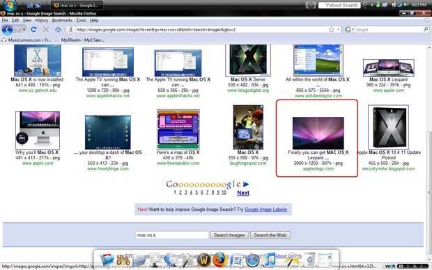 Abra su navegador de internet e ir a la búsqueda de imágenes de google. Tipo en mac os x Desplácese hacia abajo y haga clic en la imagen que se ve en la imagen 2. Establecer como fondo de escritorio.