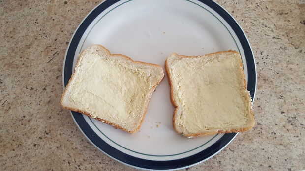 queso a la plancha es un plan barato y delicioso para cualquier comida. Me gustaría añadir algunas cosas a la mía solo para sabor.Paso 1: preparación Empezar con dos rebanadas de pan. Unta mantequilla en un lado de cada rebanada. Sacar 2 rebanadas de