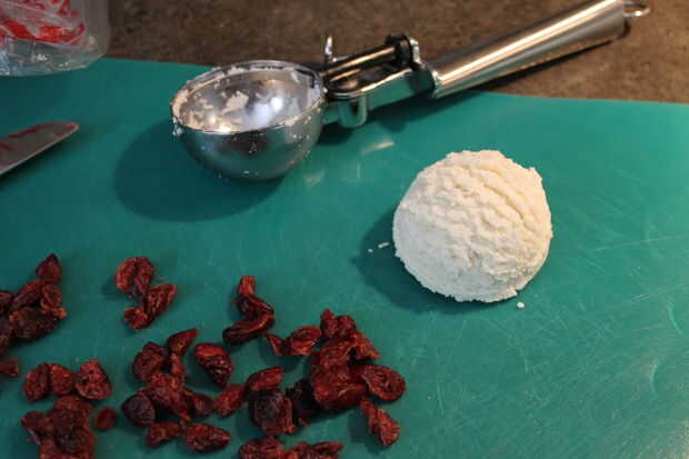 2. mi fav es añadir arándanos con sabor naranja. Utilizar una cucharada del helado para las porciones más pequeñas que utilizo como samplers para mis amigos que quieran probar mi experimentos.