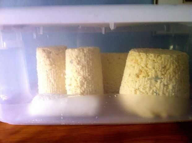 La mejor configuración para envejecer un cerebro es para colocar en un recipiente (por ejemplo, el recipiente de Tupperware-estilo en la foto). Dentro de la papelera, el cerebro debe sentarse encima de un sushi o estera del queso real. Cierre el compartimiento libremente y mantener en un lugar que es en cualquier lugar de 38 grados centígrados (que sería tu nevera) hasta 55 grados centígrados (que serían una cueva de queso controlado o un super estable y frío sótano o bodega de raíz). Abra regularmente la papelera para asegurarse de que el queso es demasiado húmedo ni demasiado seco. Use toallas de papel para absorber el exceso de humedad.
