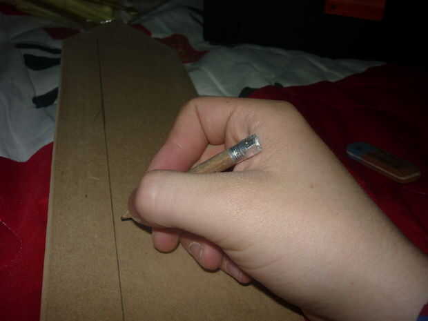después de dar la forma básica de la hoja, se dibuje la línea en medio de la hoja, mediante un Reglamento o wathever como esta