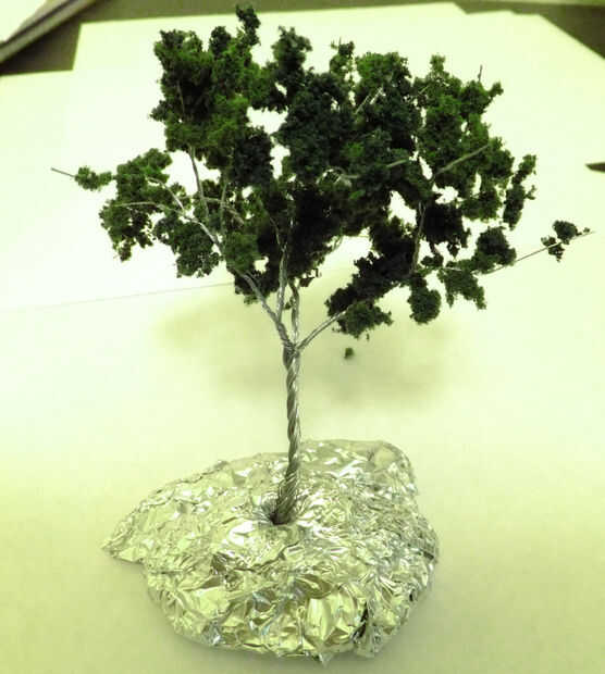 - Puede cubrir el dosel de su árbol en adhesivo en aerosol y rocíe sobre follaje de ferrocarril modelo para un efecto realista del pabellón.