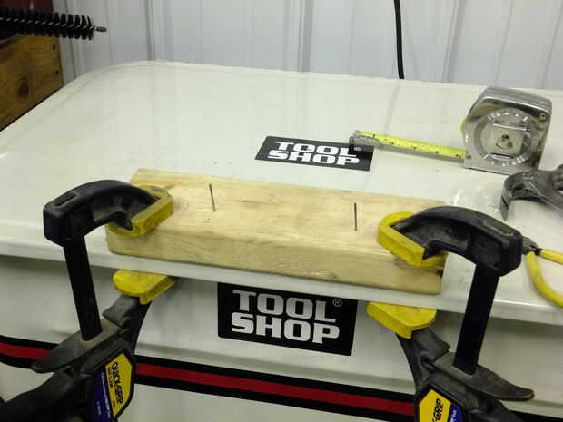 - Sujetar una abrazadera en cada extremo de la tabla. Usted no quiere cualquier pinzas entre las uñas como más probable es que se raspe tus nudillos en ellos en pasos posteriores.