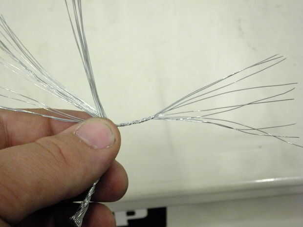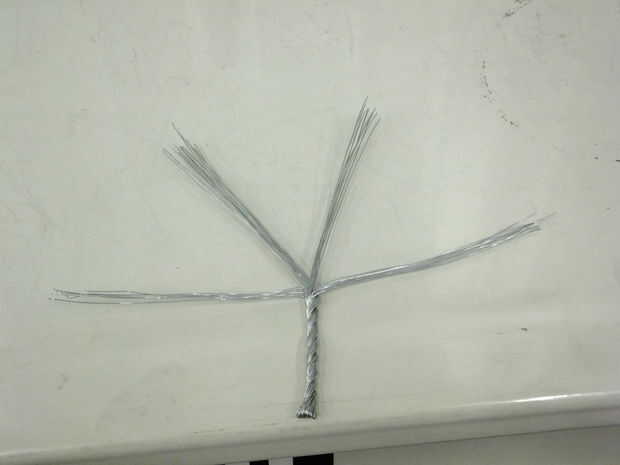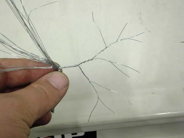 - Al llegar a este punto, volver atrás y tuerza los alambres que fuera hasta que tienen 1/2" de hilo sin torsión izquierda.