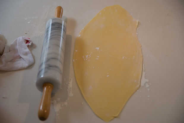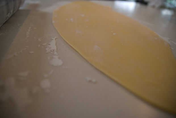 Si usted puede, conseguir a 1mm de espesor. Si empieza a pegarse, tome poco más seca de la harina allí.