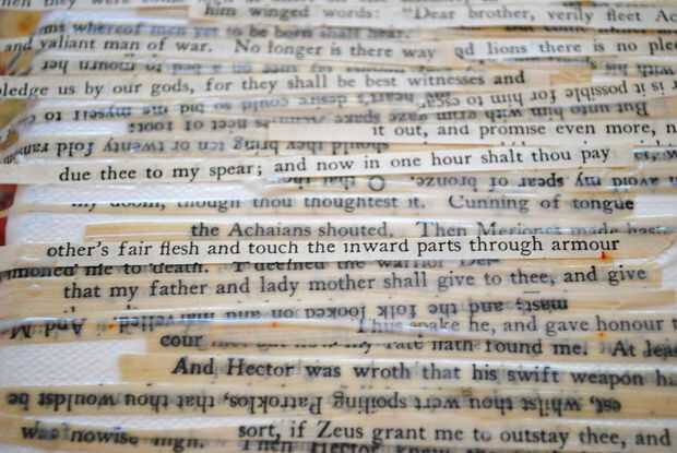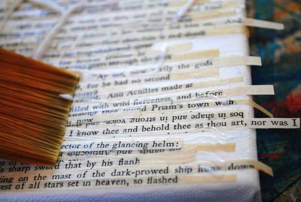 Capa como muchas tiras como usted quiere, sólo pensar en ellos como un bocadillo. Quieres tener mate medio bajo y en la parte superior del papel. Una vez que usted haya seleccionado las tiras en su primera capa de medio, detener antes de que se seque para suavizar con un pincel. Si necesita agregar más medio para asegurarse de que todo el papel es cubierto, hacerlo ahora. Incluso no tienes que dejarlo que se seque para añadir más papel. Use su abrigo como una nueva base para el papel.