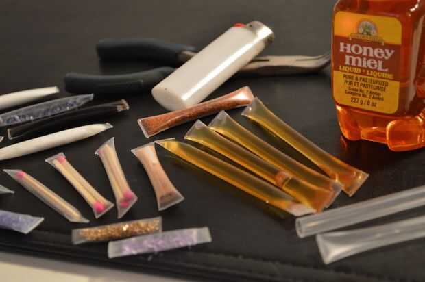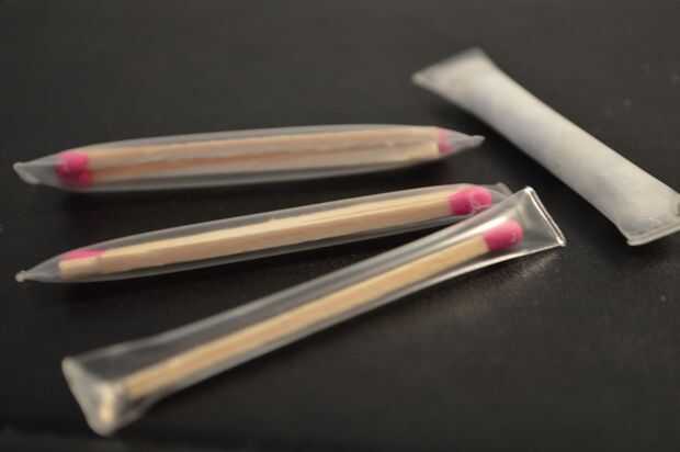 Se muestra cómo hacer un simple envase impermeable sellando los extremos de una pajita para contener todo lo que está dentro. Sellado de las pajuelas es bastante sencillo; los extremos de la paja se llevan a cabo con los alicates de nariz de aguja unos 2-3mm del extremo de la paja. Entonces se utiliza un mechero para derretir la 2-3mm de sellado cierre el extremo de la paja. Ideal para camping, kits de supervivencia, senderismo, excursionismo y para mantener algo que va cabe dentro que no quiere mojarse. Puede utilizar éstos para sostener partidos y Yesca, especias y salsas, o dinero y papeles pequeños.