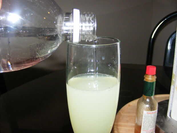 Mezcle el azúcar en la mezcla, luego agregar un poco de agua carbonatada hasta su no demasiado fuerte, o no demasiado deluted.
