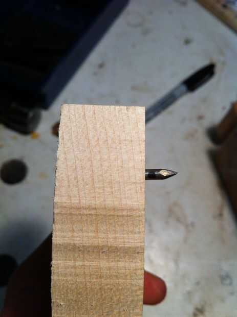 Ahora tienes que poner un clavo a través del orificio. Haga una marca con un rotulador en el clavo que es aproximadamente 1/8 de pulgada de la madera.