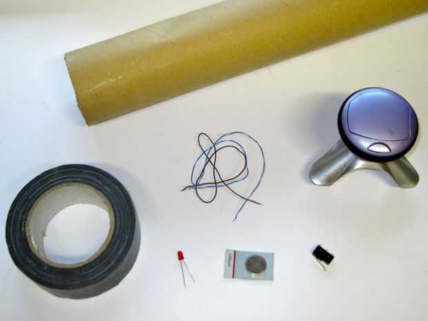 - Dos (parpadeantes) LED ' s rojos, alrededor de 1m de cable y una pila de botón 3V