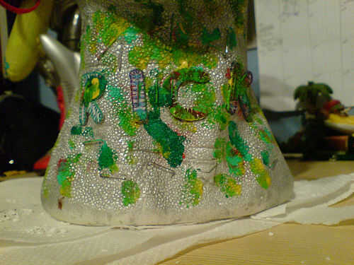 Mientras estás allí, engrape las letras fieltros en cuello. Tiro en unas más grapas para la buena suerte. Pintura liberalmente.