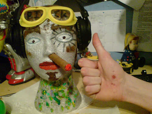 Oh, y también atamos un globo a la nariz de "Rick". Rápidamente me vino. No se aconseja esto.