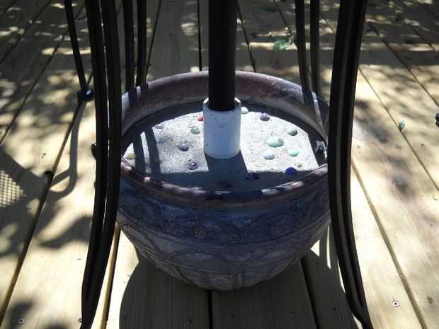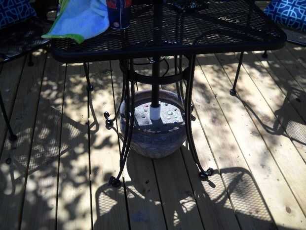 Recientemente ha añadido una piscina y cubierta a nuestra casa y había añadido algunas mesas con sillas y sombrillas a la mezcla. Mi preocupación era el viento, y también qué pasa si quería mover un paraguas para proporcionar un poco de sombra cuando estoy exponiendo en el día. Un poco de sombra para cubrir mi cara por ejemplo.