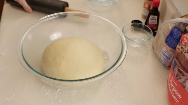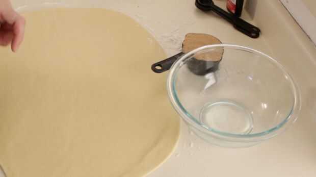 Una vez la masa ha subido y es de doble tamaño, será estirar la masa en forma de rectángulo. Usted puede rodarlo hacia fuera como grueso o fino como usted quiere.