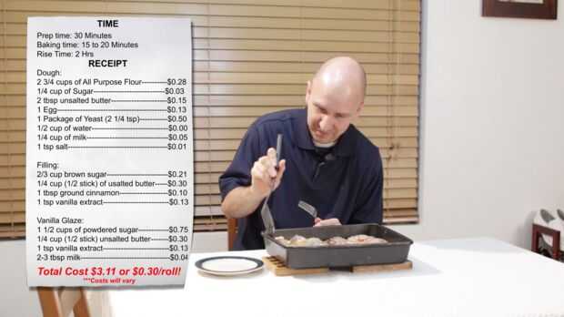Estos rollos de canela son super baratos hacer. Este lote me costo a $3,11, o alrededor de $0,30 por el rodillo. Generalmente cuestan más de un $1,50 o más por el rodillo para comprar en una panadería, o en algún lugar. Costos sin duda variará dependiendo de cómo mucho sus costos donde usted vive, y lo trata le puede encontrar los ingredientes. Toma un poco de tiempo, pero la mayoría de ese tiempo sólo permite el aumento de la masa, por lo que definitivamente puede hacer otras cosas mientras está sucediendo. Tarda unos 30 minutos de tiempo de preparación, 2 horas de tiempo de subida y unos 15 a 20 minutos de tiempo de cocción.