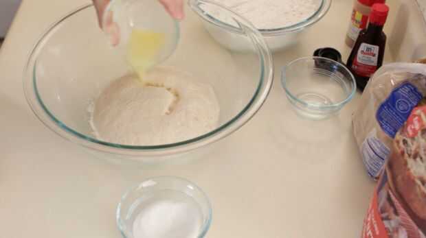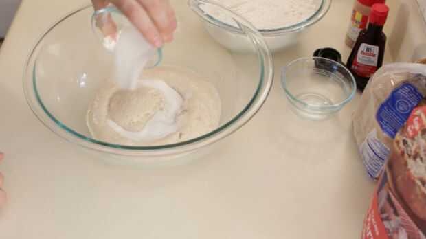 Observe la primera foto, cuánto la levadura ha crecido. Esto es lo que queremos ver, se trata de cómo sabemos que la levadura está viva y próspera. Ahora añadir la mantequilla derretida y el resto del azúcar y mezclar con un batidor o un tenedor.