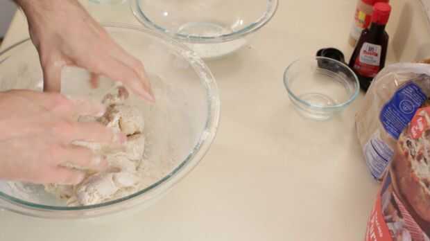 Ahora añadimos la harina poco a poco, seguir usando mi Bata para la primera taza de harina más o menos, luego cambiar a una cuchara de madera. Sin duda puede utilizar una batidora para hacer la masa, pero si no tienes un mezclador, puede hacerlo todo a mano como yo. Continúe añadiendo la harina, aproximadamente el 80% o menos, hasta obtener una masa pegajosa agradable, añada un poco más de la harina y amasar un poco en el recipiente hasta que se ponga el acceso harina de los lados, etc.. Luego tomar la bajada hacia fuera y lo puso sobre el mostrador con la harina restante.