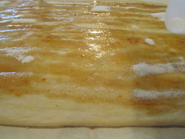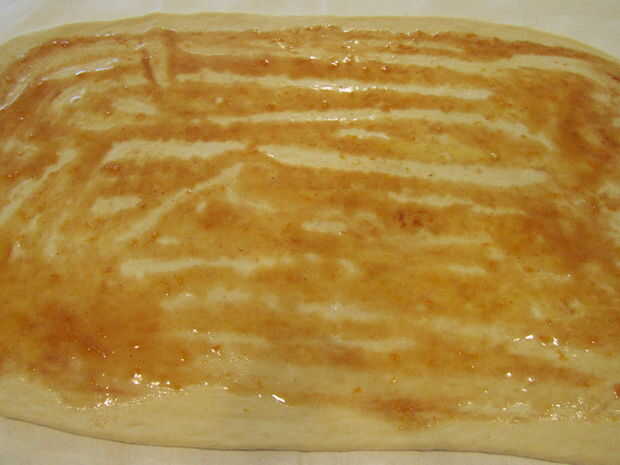 Vierta esta mezcla sobre la masa y uniformemente difundirlo alrededor para cubrir toda la superficie.