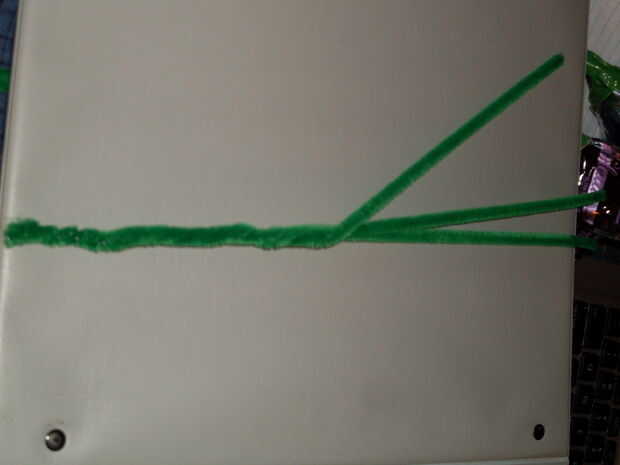 Para hacer el tallo, trence los 3 limpiapipas verdes firmeza.