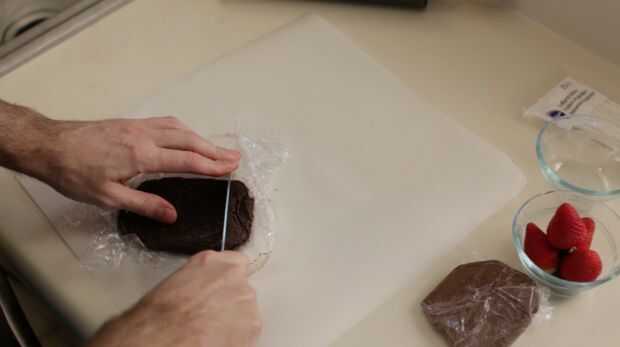 Primero vamos a pellizcar apagado o cortar nuestro modelado de Chocolate. Dependerá de cuán grande quieres tu rosa a. Asegúrese de que tener un pedazo grande de papel de pergamino que están trabajando en.