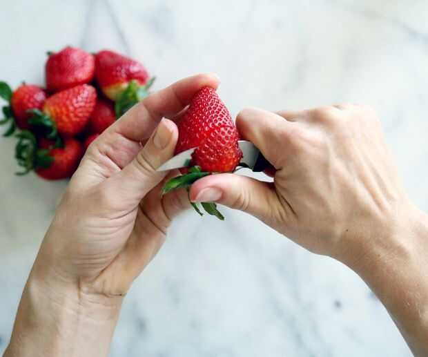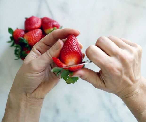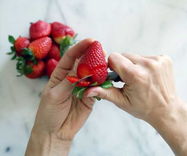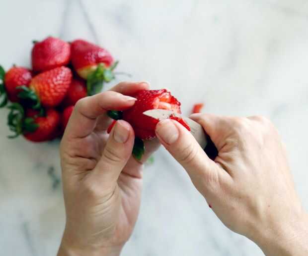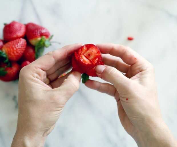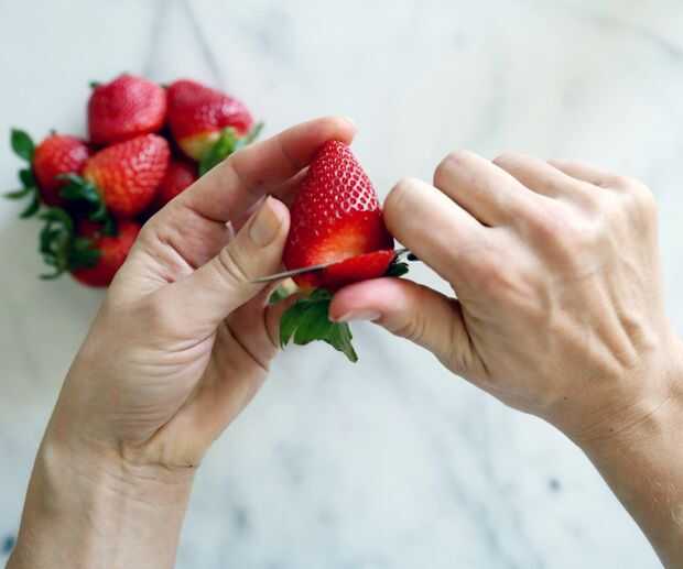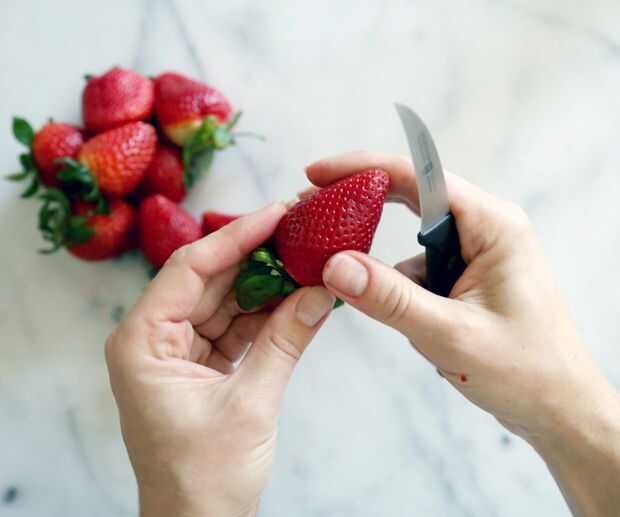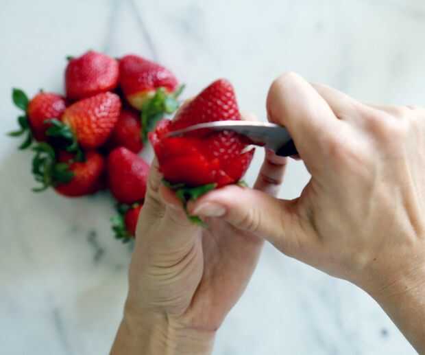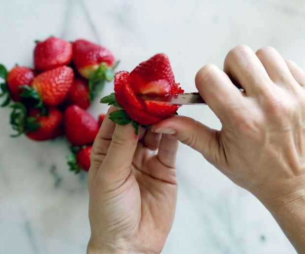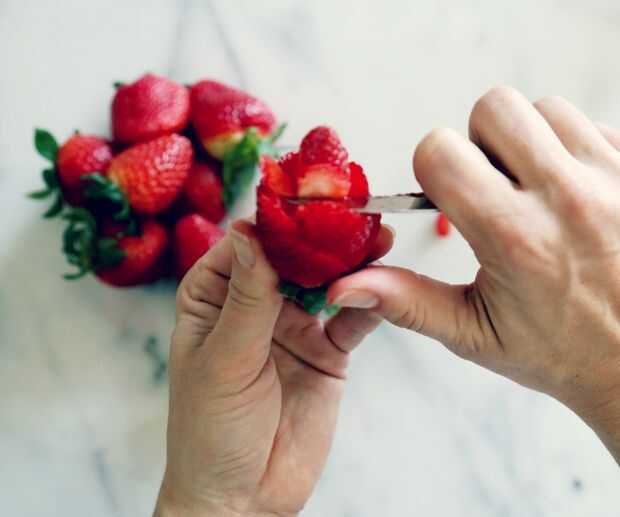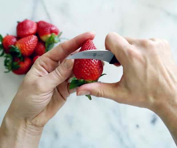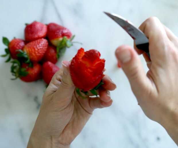 Utilizar la navaja de emparejamiento, corta aproximadamente una pulgada de la base de la baya hasta que esté casi a través de. Antes de retirar el cuchillo, tire hacia atrás 'pétalo' para que se pega hacia fuera un poco.