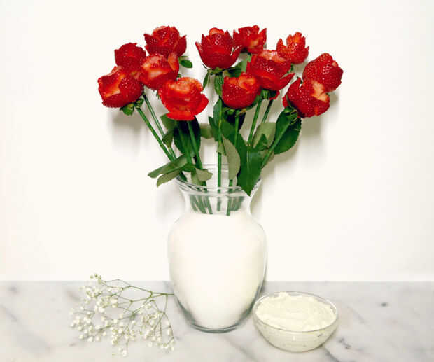 Usted puede escoger envolver las rosas estilo bouquet en cera o papel de carnicero la forma de una tienda de flores serían, o arreglarlos en un vaso lleno de azúcar blanco, el arroz o pequeñas rocas blancas. (Yo usé azúcar.)