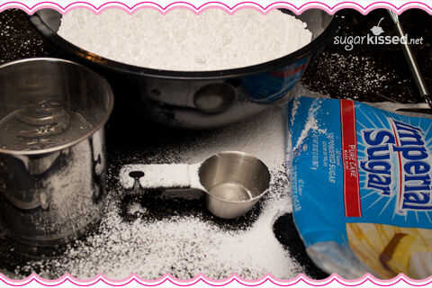 Ahora, prepárate para un entrenamiento de brazo vicioso! En otro tazón grande, cernir dos libras de azúcar en polvo. Siempre hago un lío hacerlo, así que si usted averiguar cómo hacer esto sin obtener azúcar por todas partes, eres una estrella en mis ojos! Pssst... He oído un rumor sin confirmar que puede omitir el tamizar siempre y cuando no estás haciendo tuberías con una punta muy pequeña.