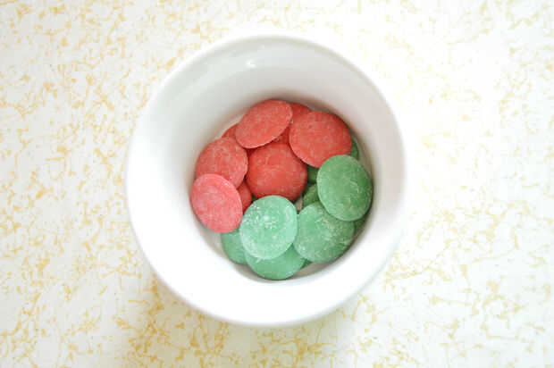 En un recipiente se derrite tome igual cantidad de dulces rojo y verde.