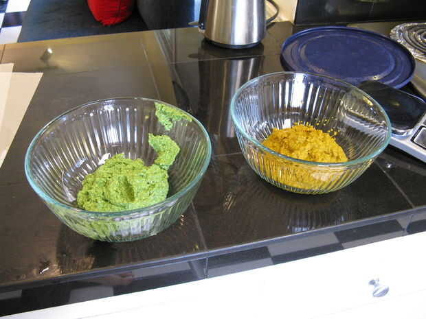 1 puñado de sabor--secas o frutas frescas, pesto, asado y picadas, pimientos, queso, hierbas frescas