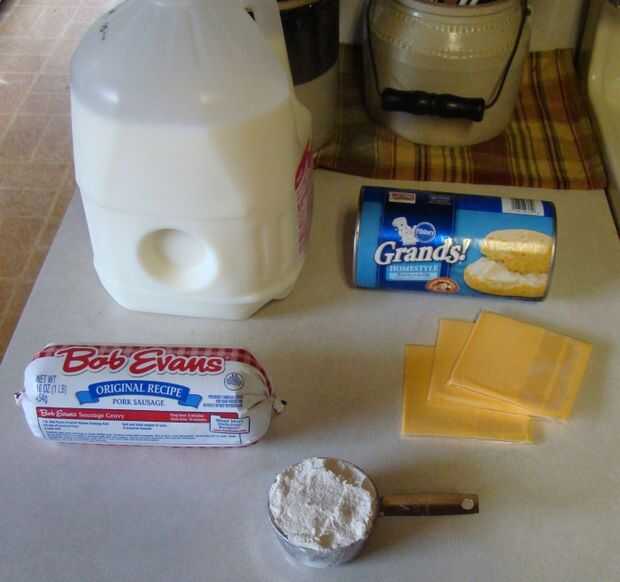 una americana clásica comida, ideal para alimentar una casa llena de huéspedes.El vídeo le guía a través de los detalles,Se necesita:HarinaLecheSalchicha del país - me gusta Jimmy Dean pero casi cualquier marca haráGalletas de mantequilla - estoy usa
