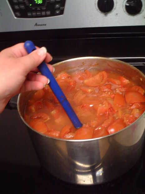 -Poner a hervir sobre fuego alto, retirar del fuego y dejar reposar y empinadas mientras espera los tomates de paso 1 (20-25 min)