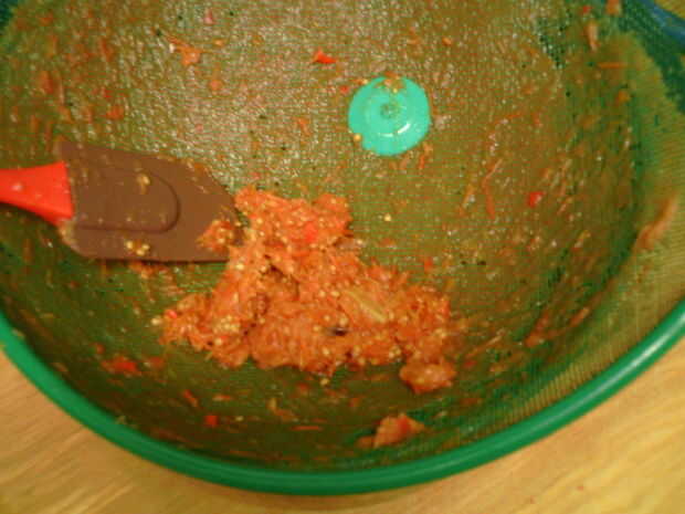 -Vierta la mezcla de tomate tamizado en su maceta original