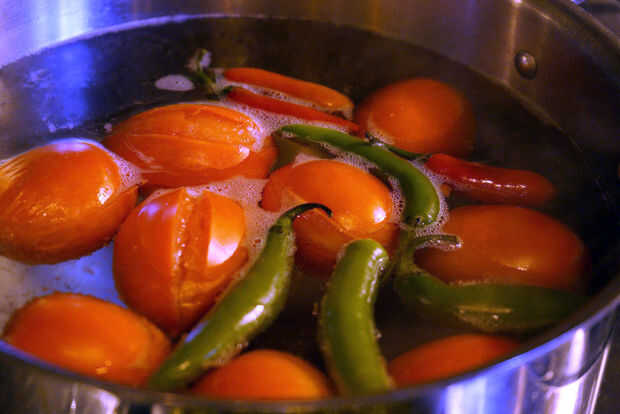 hay buena salsa verde recetas aquí en Instructables, pero el mío es tan simple y fácil pensé compartirlo...Paso 1: La parte más difícil La parte más difícil de mi receta es pelar los tomates... y que no es difícil en absoluto. En realidad, tomar todo